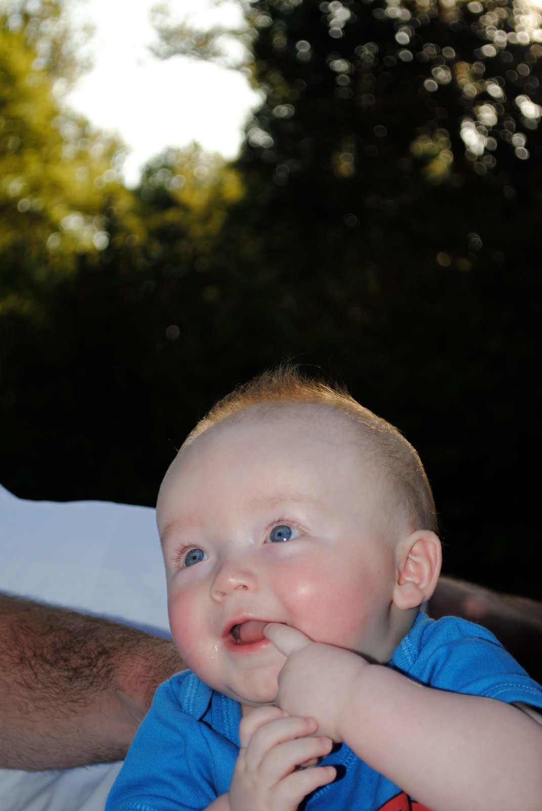 After lunch we went over to Bebe and T's and went on a walk then just hung out in the front yard. I LOVE it when Dad puts me over his head and makes me fly. I rocked my Superman onesie today so it was totally fitting. It might be my favorite thing ever and if I laugh he will do it all day long...sucker! I also got to talk to Rizzle and SteveO via Skype. Yep, I am 5 months old and I Skype...that will go on the resume! To top the day off Mom was in a GREAT mood! For Easter, Dad surprised her with a trip to Florida to see my Auntie AmyJo! Mom is so excited she can barely stand it....She's going to the beach! Smart guy my dad....